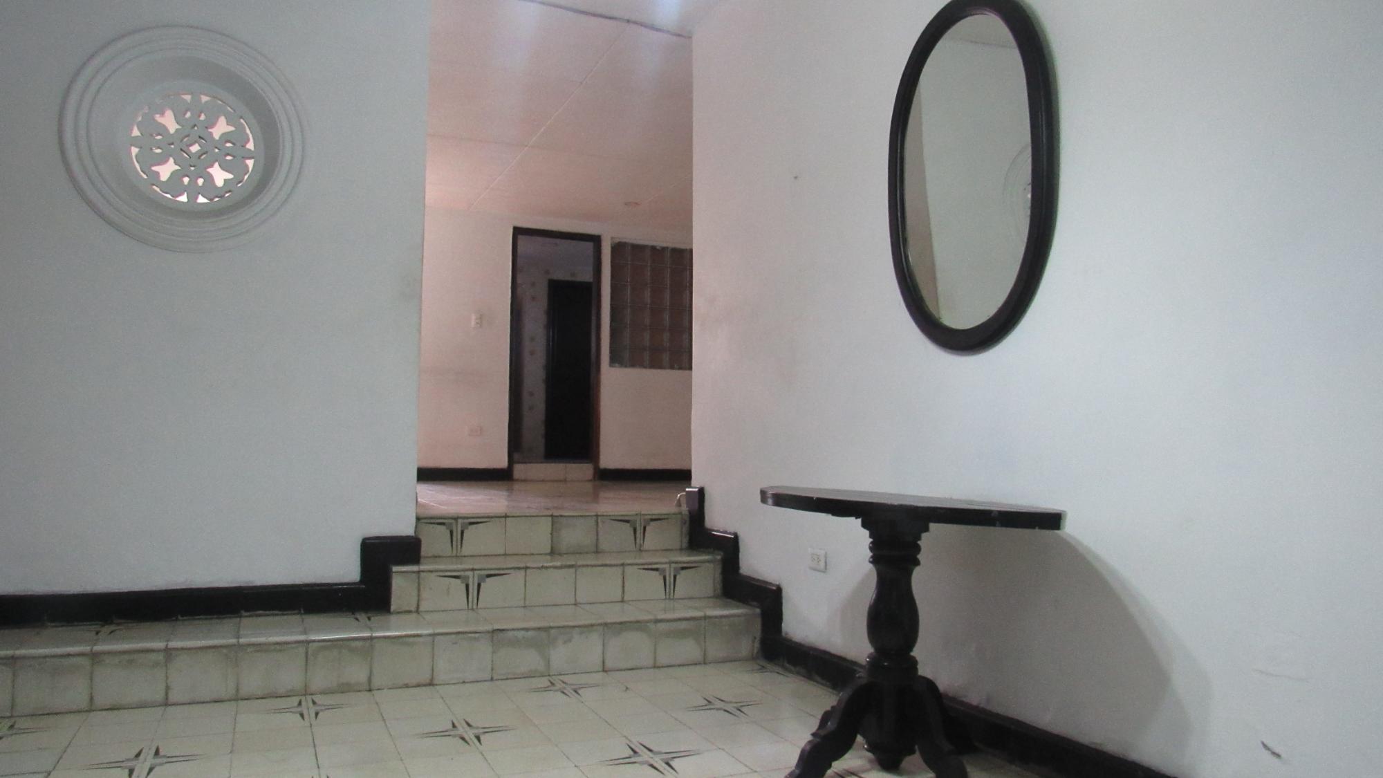 House for sale in a commercial corridor, in good condition, traditional construction, front yard, garage, living room, hallway, 3 bedrooms, 2 bathrooms, kitchen, laundry area, patio, bedroom with independent entrance from the street. Polished cement tile floors, corrugated Eternit roof.